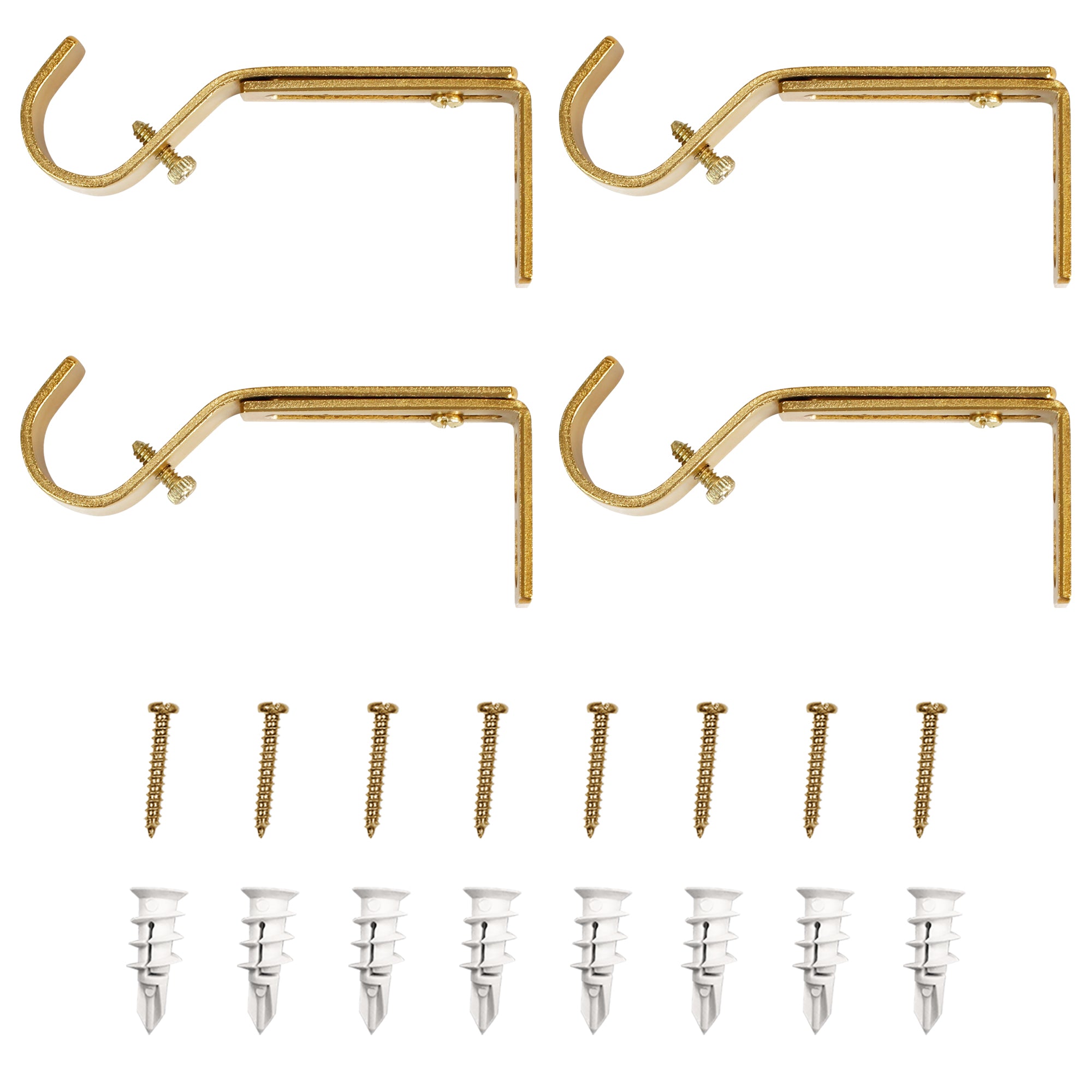 | Lumi Home Furnishings Drapery Hardware - Single Extendable Brackets are a set of 4 rod brackets fits drapery rods up to 1 in. in diameter. Featuring metal construction for lasting durability, the brackets have a Brushed Nickel,ORB,Matte Black and Gold finishes that accentuates your existing decor. All you will need for a quick and easy installation is a screwdriver or a cordless drill. |