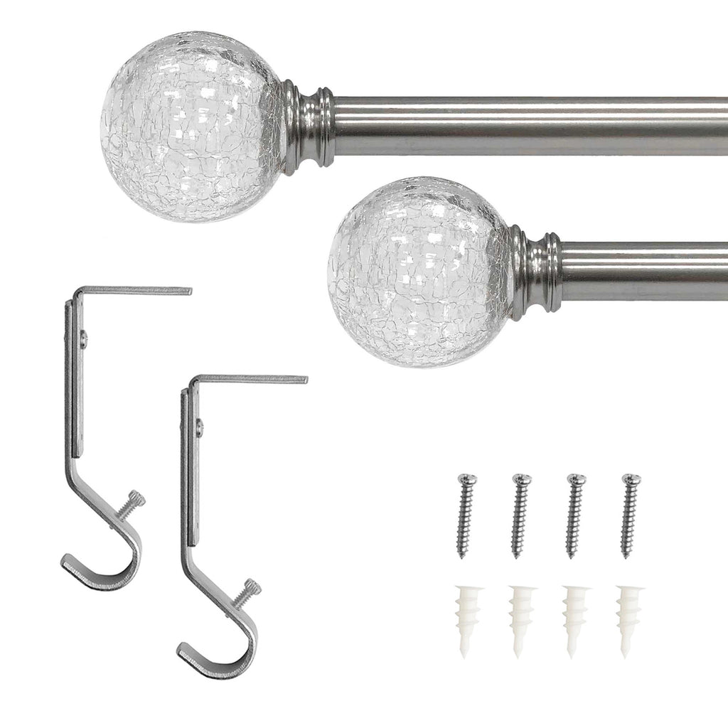 3/4" Drapery Single Curtain Rod Set with Crackled Ball Finials_Brushed Nickel
